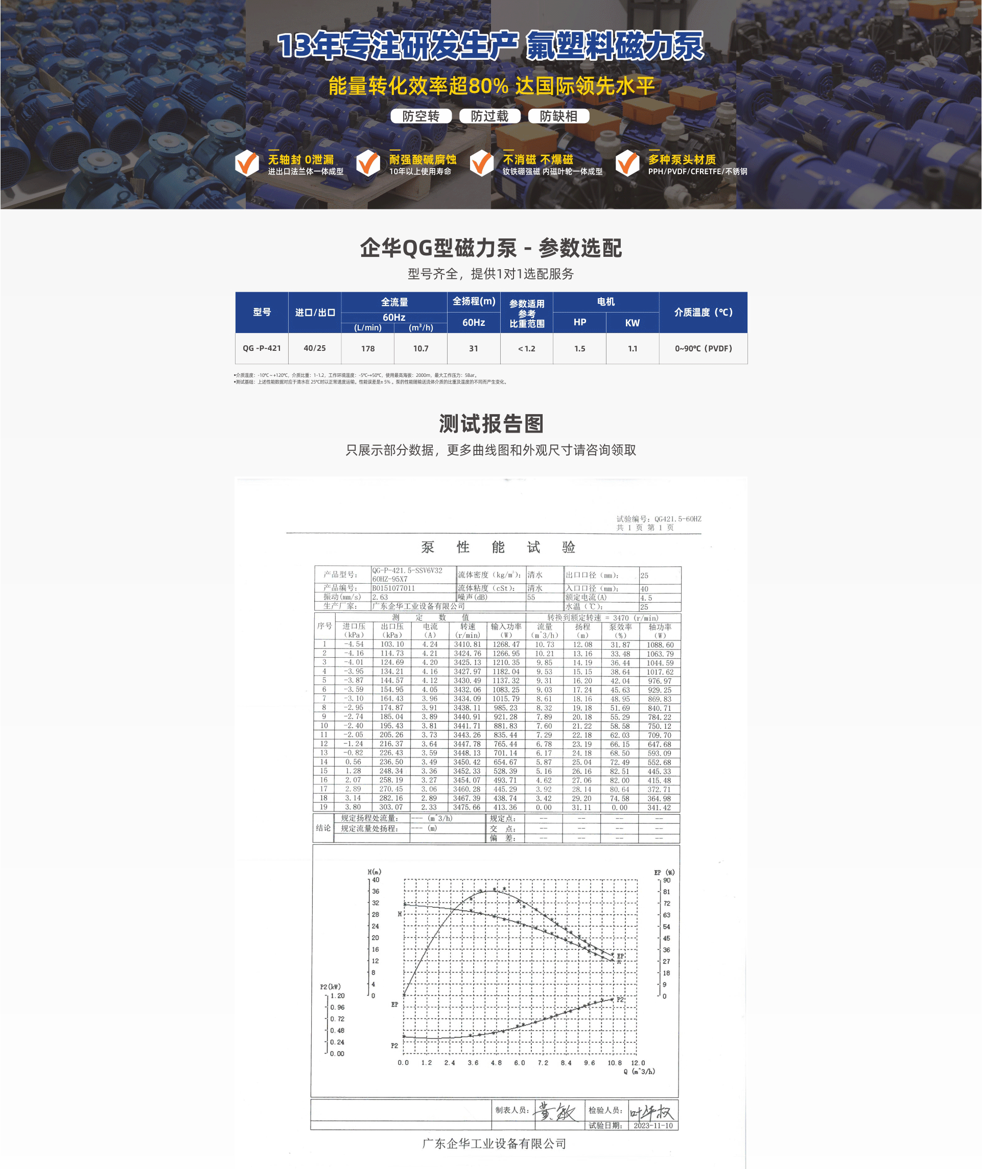 獨(dú)特的雙葉輪結(jié)構(gòu),泵效率超80%,達(dá)到或超過(guò)進(jìn)口產(chǎn)品;耐強(qiáng)腐蝕,進(jìn)出口法蘭一體成型,滴水不漏;流量大、振動(dòng)小、噪音低、高效率、低能耗的選擇。